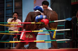 Di Taman Safari Thailand, ada satu pertunjukan yang mendapat perhatian banyakwisatawan Tinju Orangutan. Kerumunan wisatawan dan penggemar olahraga dari SafariWorld berkumpul untuk melihat melawan seekor orangutan yang menjalankan 30 menit.Dua orangutan dilatih untuk mengalahkan satu sama lain untuk menghibur parapengunjung.